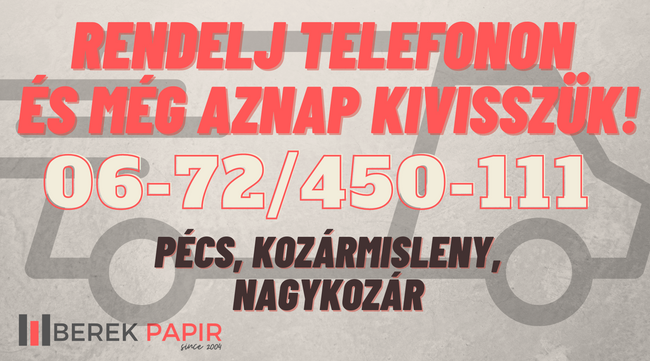 A 16:00-ig leadott rendeléseket még aznap kiszállítjuk, mindössze 390 Ft-ért. A rendelések az alábbi telefonszámon adhatóak le, 8:00-16:00-ig, ahol szakértő kollégánk segíti a megfelelő termékek kivála